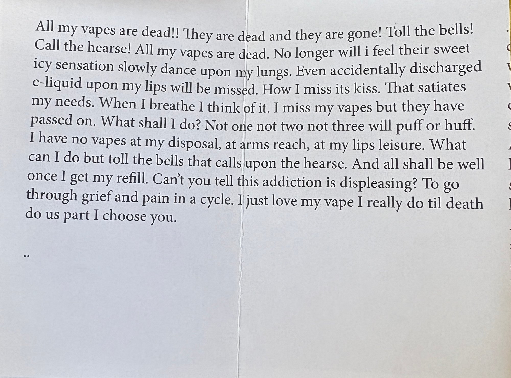 All my vapes are dead, I'm going off my meds, I quit my job